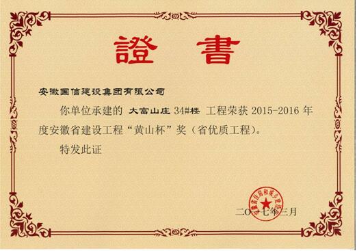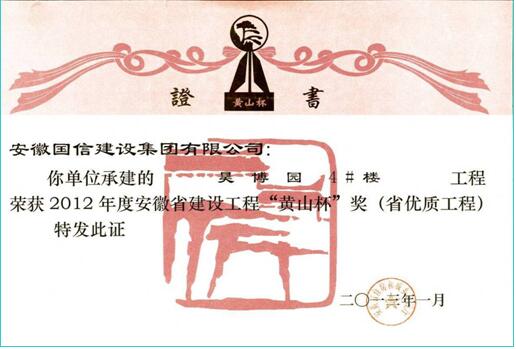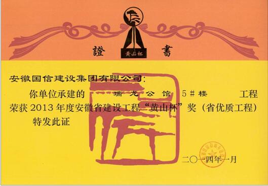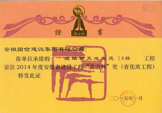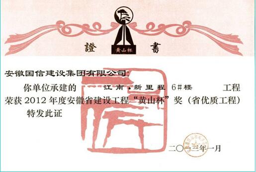 三、企业近年获得“华东杯、黄山杯、琥珀杯”证书