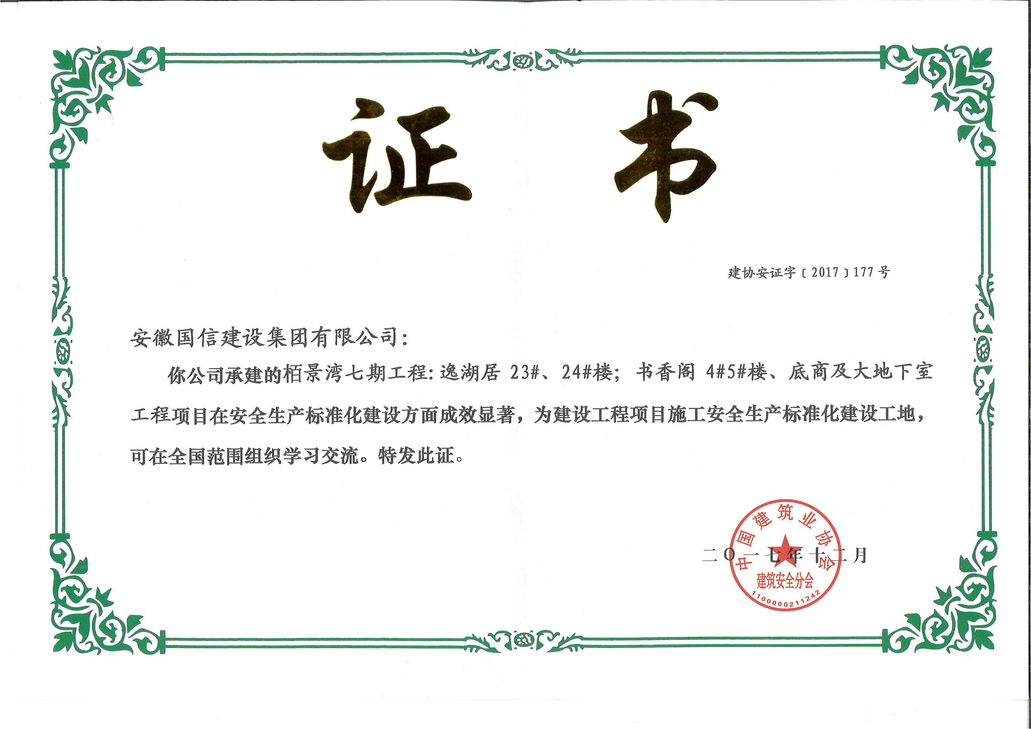 四、企业近年获得国家级、省级示范工地证书